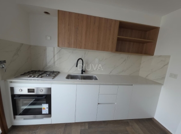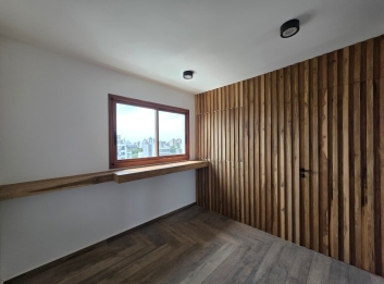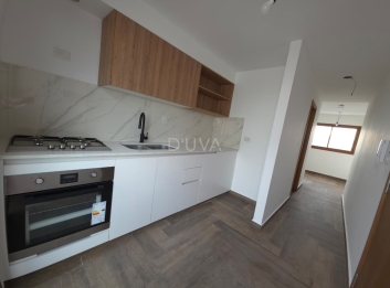 Piso exclusivo, en edificio de nueve unidades funcionales, cuenta con una superficie cubierta aproximada de 35 m2, Puerta de ingreso enchapada en petiribi con cerradura digital, cocina con muebles completos, mesada de quarzo, (bachas jhonson, griferia Peirano), anafe a gas y horno electrico marca Orbis, baño completo con mampara, vanitory en quarzo con placas de melamina antihumedad, sanitarios Roca, juego de griferias Peirano Beat, comedor, dormitorio con placard, terraza propia con parrilla.
